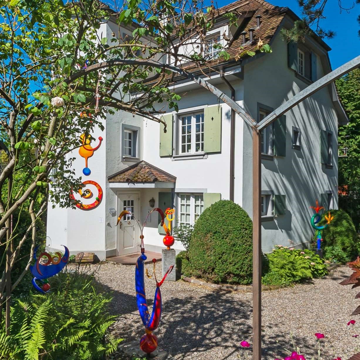 The gallery is situated in the garden pavilion of the Claire Ochsner’s “Künstlerhaus”, at Baselstrasse 88 in Riehen, directly opposite to the main entrance of Fondation Beyeler. This excellent location houses an ever-changing selection of works by the artists I have dedicated my life to. The premises also host a small and charming café. All of the works I’m offering for sale are flawless, both in terms of their authenticity, condition and provenance. This is how I have always done things, and I will continue to pay particular attention to this aspect in future. As such, all pieces come with a full warranty. Complete transparency, professionalism and reliability have always been the cornerstones of my work, as have my boundless love for art and uncompromising respect for the artists, their oeuvre, their patrons and collectors. Being a fanatic collector myself, makes my work so much easier. I would be truly delighted at the opportunity to engage in conversation and moments of shared contemplation – as has always been the case. The gallery may not be the largest of venues, but it is a true gem set within a beautiful garden, with old trees and spaces ideal for displaying sculptures – all set around a small pond directly in front of the “summer house” that has welcomed me and my images with such outstanding hospitality. Sufficient parking spaces are available in the Parkhaus Zentrum (Beyeler), just 70 metres away from the gallery. The Tram station “Fondation Beyeler” is right in front of the gallery. The opening hours of the gallery are: Wednesday to Sunday – 11.00 am to 6.00 pm.